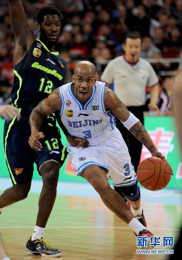 3月11日,北京金隅队球员马布里(前右)在比赛中突破。