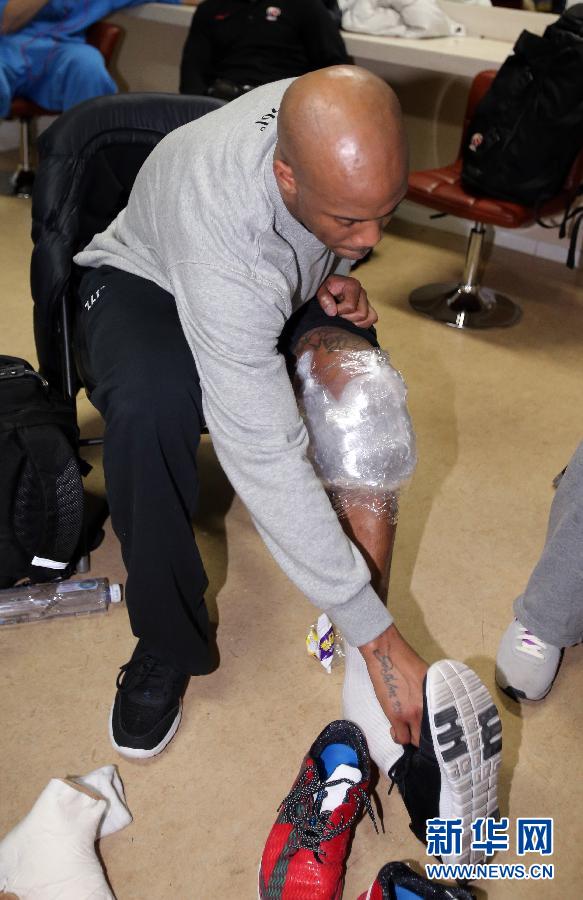 3月11日,北京金隅队球员马布里赛后在休息室。