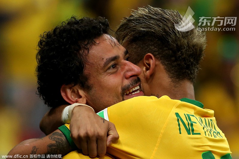 当地时间2014年6月23日,巴西利亚国家体育场,2014巴西世界杯小组赛A组巴西4-1大胜喀麦隆,以小组第一出线,下一轮将对阵智利。内马尔梅开二度跃居射手榜首位,弗雷德锦上添花。(来源:东方IC未经许可不得转载)>>>>点击进入2014巴西世界杯专题