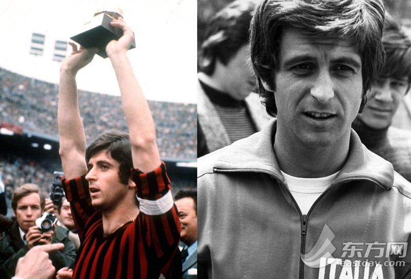 1969年金球奖得主:里维拉(意大利),里维拉随后在1970年世界杯上率领意大利屈居亚军。(来源:东方IC未经许可不得转载)>>>>点击进入2014巴西世界杯专题