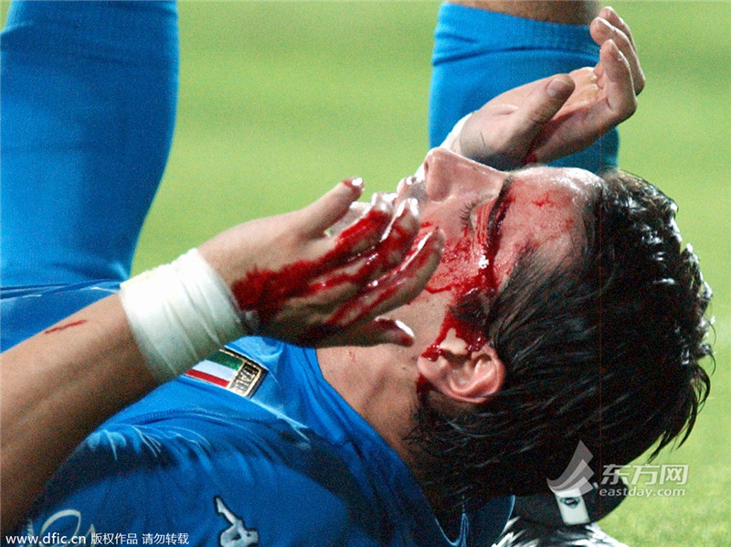 当地时间2002年6月18日,韩国广域市,2002年世界杯1/4决赛,意大利VS韩国。意大利队科科受伤流血。(来源:东方IC 未经许可不得转载) >>>点击进入2014巴西世界杯专题