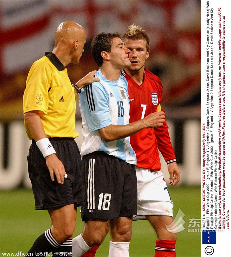 当地时间2002年6月7日,日本,2002韩日世界杯小组赛,英格兰1-0阿根廷。阿根廷球员基利-冈萨雷斯受伤。(来源:东方IC 未经许可不得转载) >>>点击进入2014巴西世界杯专题