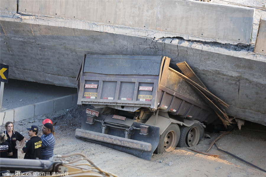 当地时间2014年7月3日,巴西贝洛奥里藏特,巴西世界杯举办城市贝洛奥里藏特一处高架桥发生坍塌,事故目前已经造成了2死19伤,有一辆大客车、两辆建筑卡车和一辆小汽车被压在了下面。事故发生在贝洛奥里藏特一条主街上,这条街道也是巴西2014年世界杯基础设施建设的一部分。贝洛奥里藏特消防部门介绍称,坍塌时一辆行驶的大客车被压在了下面,大客车女司机已经死亡。(来源:东方IC