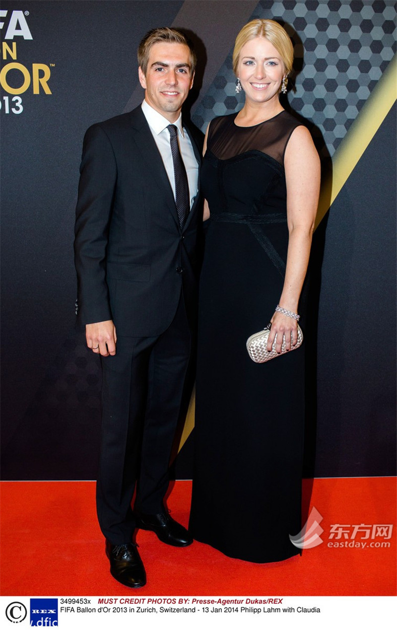 德国球星拉姆爱妻克劳迪娅当地时间2014年1月13日,瑞士,2013年国际足联金球奖颁奖典礼。