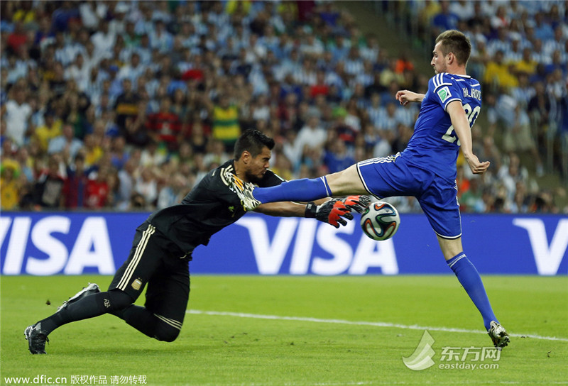 当地时间2014年6月15日,里约热内卢马拉卡纳大球场,2014巴西世界杯小组赛F组,阿根廷2-1波黑。罗梅罗扑救。(来源:东方IC 未经许可不得转载) >>>点击进入2014世界杯专题页面