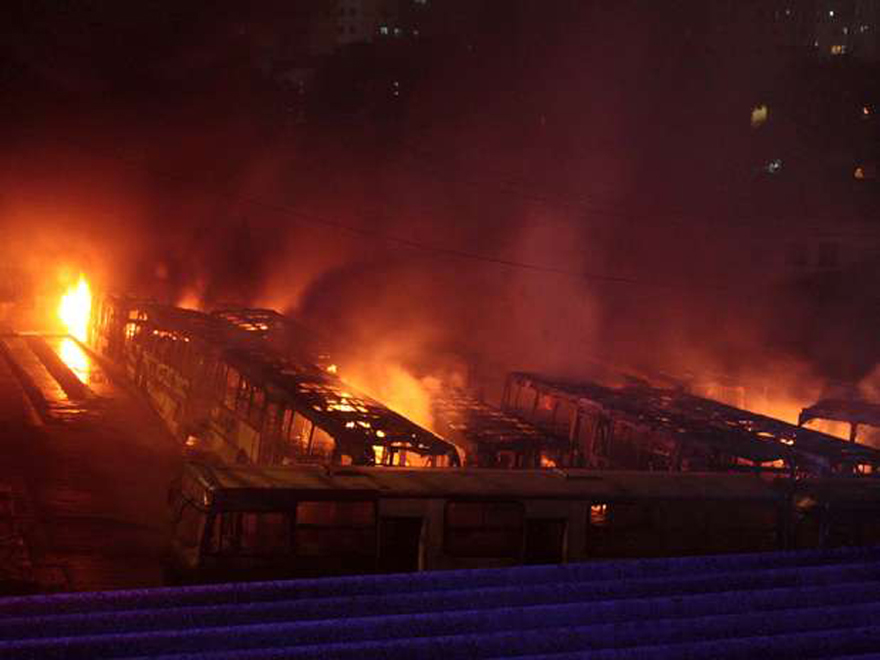 综合巴西《圣保罗页报》和阿根廷Infobae网站报道,当地时间7月8日晚,当巴西国家队以1-7的分数被德国队淘汰后,巴西球迷难掩伤心神情以及不满情绪。比赛结束后,这场比赛的举办地圣保罗市两处公交车站内的20余辆大巴被点燃,以及一处商业建筑被烧,甚至有球迷焚烧巴西国旗泄愤。 <<<<点击进入2014年巴西世界杯专题