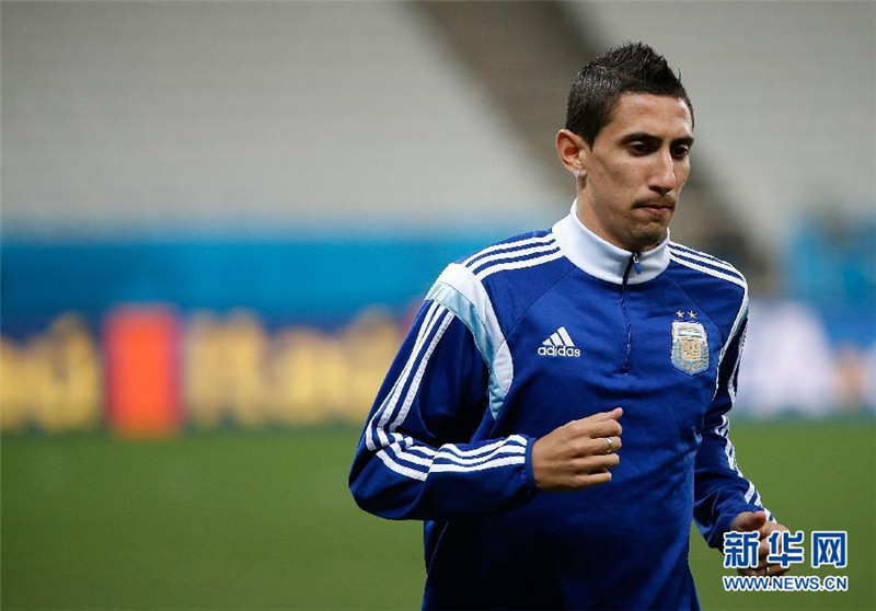 7月8日,阿根廷队球员迪玛利亚在场边慢跑。当日,阿根廷队在巴西圣保罗进行赛前训练,备战将于9日与荷兰队进行的巴西世界杯半决赛。>>>>点击进入2014巴西世界杯专题页面