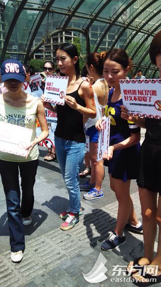 7月8日,上海12名女子组成“反世界杯联盟”举牌抗议,其中包括一名孕妇,号召“世界杯,还我男朋友”,各自的身上都写满抗议的话语,并且举着不同的标语,现场有路人加入签名的行列,不过也有球迷进行争执。>>>点击进入2014世界杯专题页面