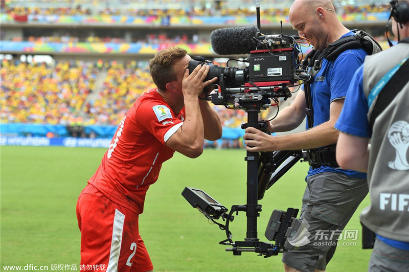 当地时间2014年6月25日,马瑙斯亚马逊球场,2014巴西世界杯小组赛E组,洪都拉斯0-3瑞士。沙奇里亲吻摄像机。(来源:东方IC 未经许可不得转载)>>>点击进入2014年巴西世界杯专题
