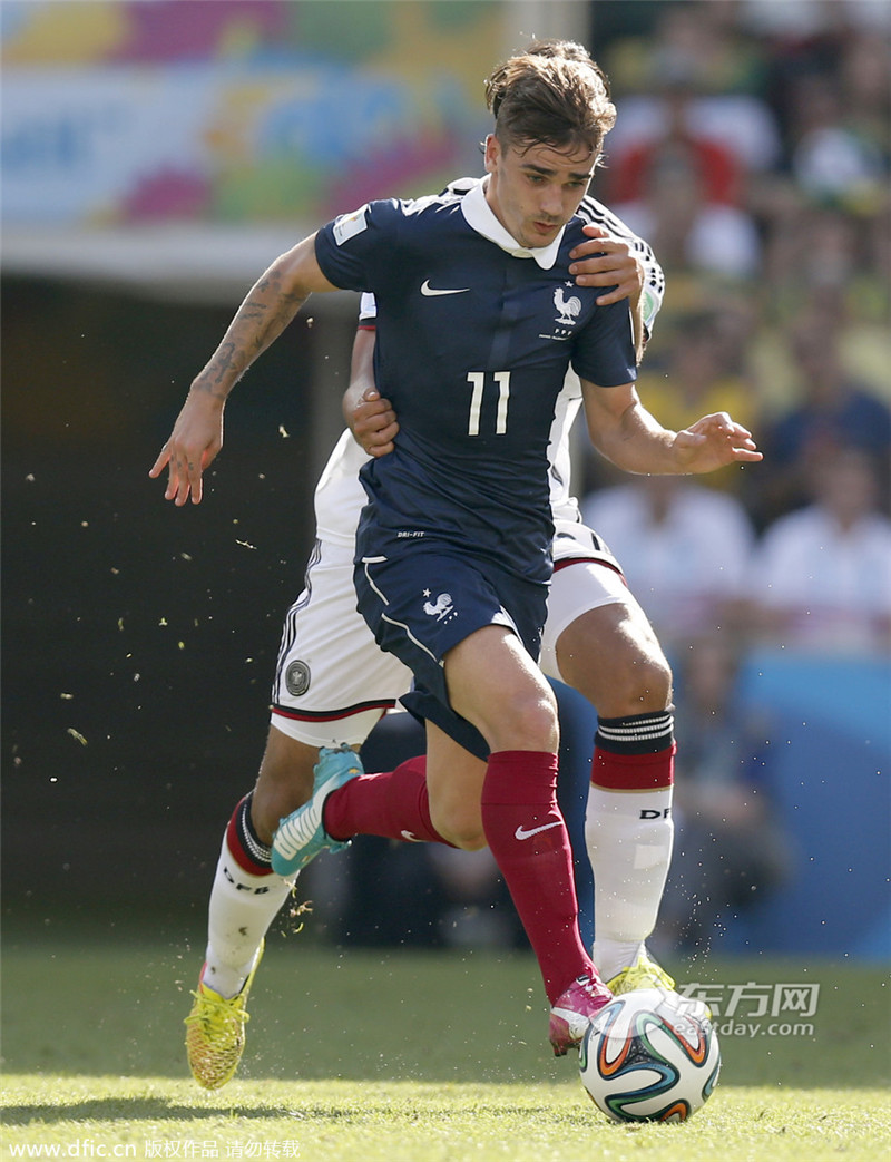 当地时间2014年7月4日,里约热内卢马拉卡纳大球场,2014巴西世界杯1/4决赛,法国0-1德国。赫迪拉从身后拉住格列茨曼。(来源:东方IC 未经许可不得转载)>>>点击进入2014年巴西世界杯专题