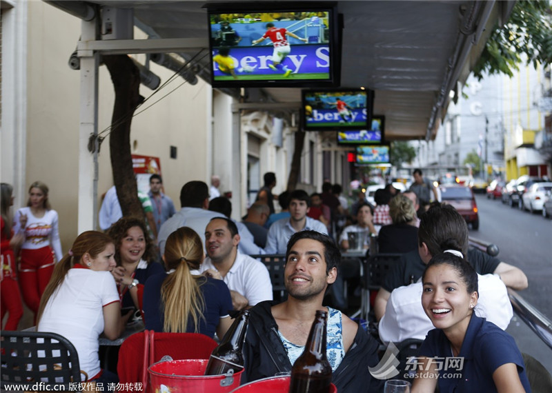 当地时间2014年6月12日,2014巴西世界杯揭幕战在东道主巴西和克罗地亚之间上演,全球各国的球迷熬夜观看了这场比赛。图为巴拉圭亚松森的球迷。(来源:东方IC 未经许可不得转载) >>>点击进入2014世界杯专题页面