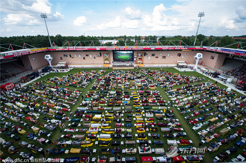 当地时间2014年6月26日,德国柏林,球迷们带着自家的沙发来到体育场观看德国与美国的世界杯小组赛。在看到德国队击败对手以小组第一晋级后,现场变成了欢乐的海洋。(来源:东方IC 未经许可不得转载) >>>点击进入2014世界杯专题页面