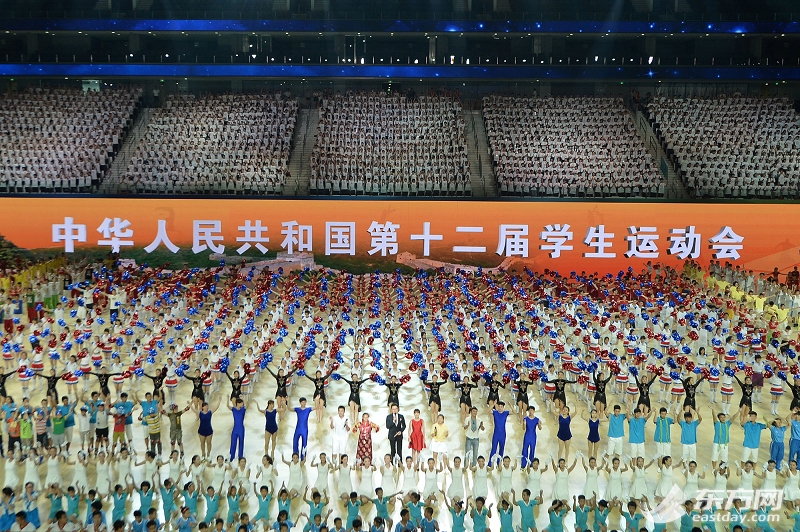 第12届全国学生运动会开幕式将于7月28日晚在上海东方体育中心拉开帷幕,本届开幕式将全部由学生担任“主角”,东方体育中心彩排现场,来自全市各大、中、小学的5000多名学生将齐聚一堂、集体亮相,呈现一场精彩绝伦的体育艺术表演。