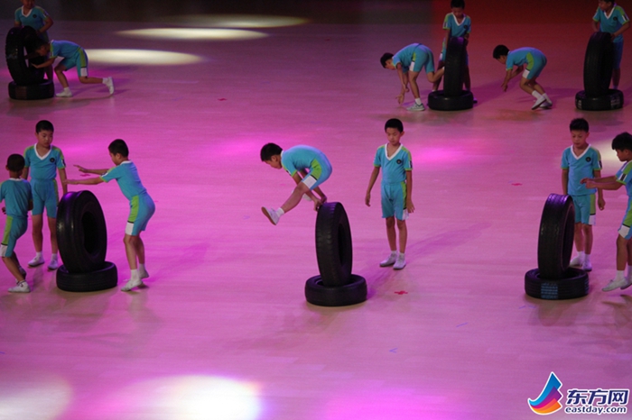 2014年7月28日晚的黄浦江畔,见证了一场青春的聚会。当晚,中华人民共和国第十二届学生运动会开幕式在上海东方体育中心精彩上演。一张张热情洋溢的脸庞、一次次超越自我的努力,以运动为名,以阳光塑心,身体与心灵都奔跑在追逐梦想的道路上。(图为:活力表演)