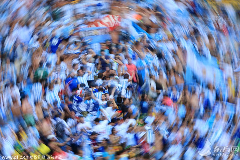 本届世界杯还有最后两场决战就将落下帷幕,摄影师用虚实变换的手法记录下许多精彩瞬间。蓝色的海洋。(来源:东方IC 未经许可不得转载)>>>点击进入2014年巴西世界杯专题