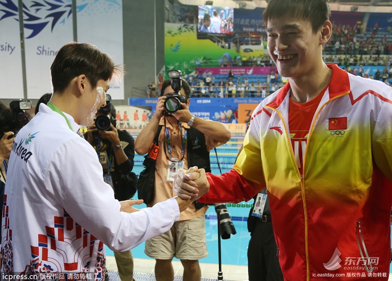 北京时间9月26日,2014年仁川亚运会游泳比赛进入到最后一天的争夺,孙杨特意为朴泰桓准备了一个生日蛋糕。27日是是朴泰桓的25岁生日。下午五点孙杨抵达场馆,手里有一个大大的盒子,经了解是他送给朴泰桓的生日蛋糕。孙杨特意叮嘱身边的工作人员,要把蛋糕放进冰箱,不要化了。但是蛋糕太大,冰箱放不下,只能放到外面的常温室保存,希望朴泰桓吃的时候蛋糕没有化掉。