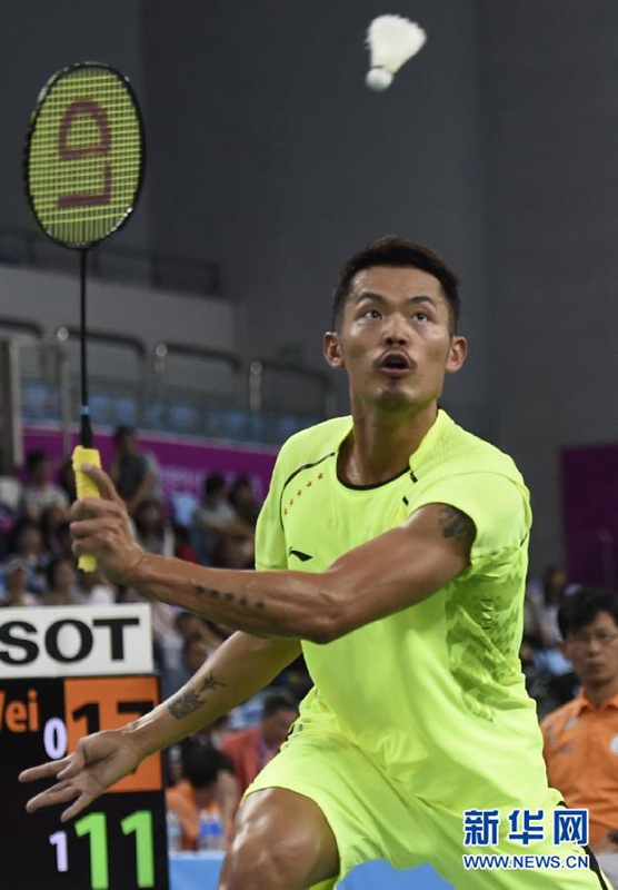9月28日,马来西亚选手李宗伟在比赛中。当日,在2014仁川亚运会羽毛球男单半决赛中,林丹以2比1战胜马来西亚选手李宗伟,晋级决赛。