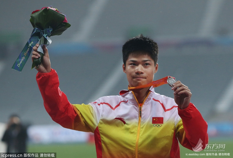 北京时间9月28日,2014年仁川亚运会进入到第9个比赛日,田径赛场展开第二日争夺,在备受关注的男子100米决赛中,苏炳添跑出10秒10获得亚军,卡塔尔的归化运动员奥古诺德9秒93破亚洲纪录夺冠,张培萌获得了第四名无缘奖牌。
