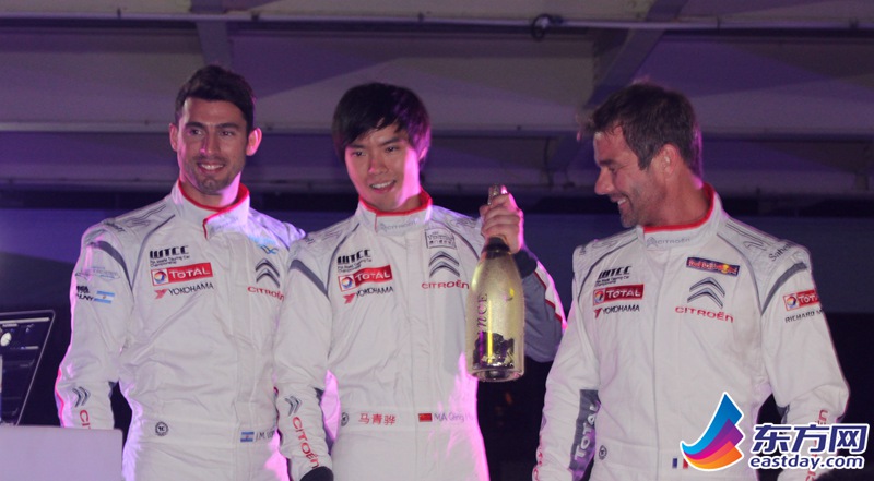 10月8日,首届马青骅卡丁车杯在2062卡丁车俱乐部举行,庆祝2014赛季世界房车锦标赛(WTCC)新一分站将在上海打响。马青骅与为WTCC雪铁龙车队另三位车手一同上场,为车迷献上一场热闹的表演赛。图为:马青骅在表演赛中获得冠军