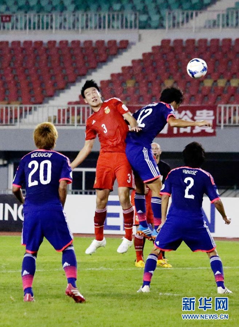 10月9日,中国队球员刘军(左二)在比赛中拼抢。
