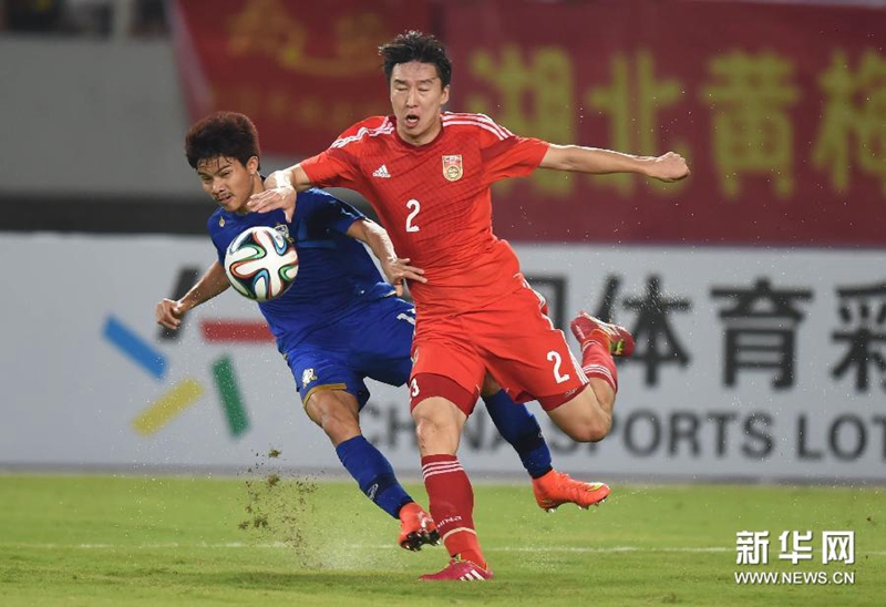 10月10日,中国队球员任航(右)在比赛中拼抢。