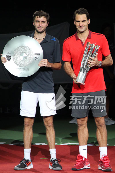 10月12日晚,ATP1000大师系列赛上海劳力士大师赛结束了最后的冠军争夺战。3号种子、瑞士球王费德勒在首盘挽救了一个盘点、次盘挽救两个盘点后,以7-6(6)/7-6(2)击败法国名将西蒙,首次赢得上海大师赛冠军,这也是他职业生涯的第81冠。