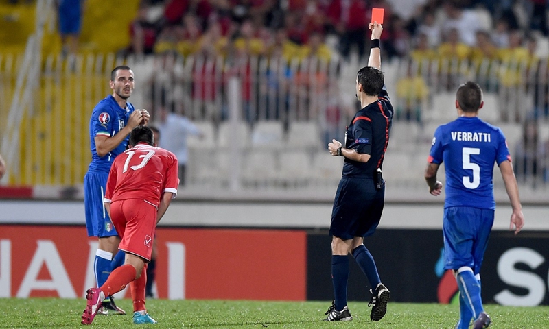 博努奇下半场被罚下