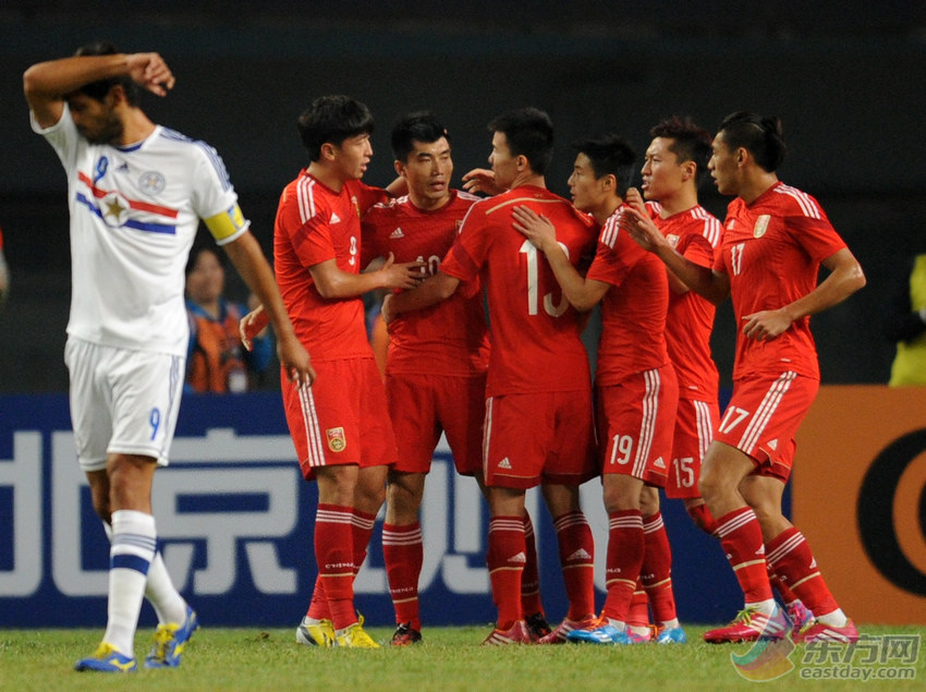 中国队球员在比赛中庆祝进球。(来源:新华社)