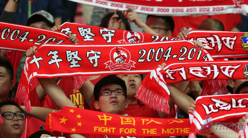 球迷在看台上为中国队加油。(来源:新华社)