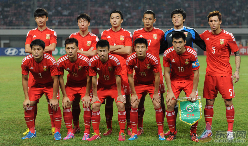 10月14日,中国队首发球员在赛前合影。(来源:新华社)