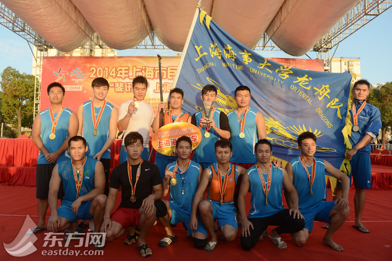 上海海事大学龙舟队获公开组小龙舟200米冠军。