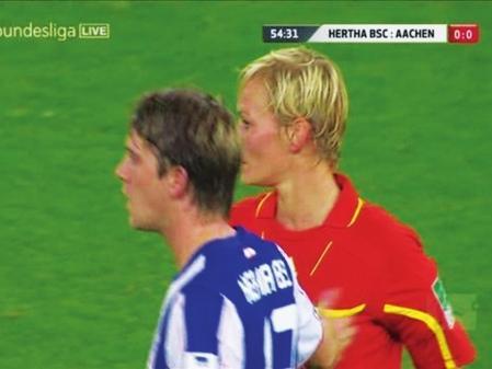 这并不是施泰因豪斯第一次被“骚扰”了,在2010年10月的一场德乙联赛中,执法柏林赫塔与亚琛一战的施泰因豪斯,更是在比赛中被柏林赫塔中场尼德马尔“袭胸”骚扰,搞得她羞愤难当。事后,伸出“咸猪手”的尼德马尔还狡辩称自己并非有意,是不小心失手“碰”到裁判的。不过,施泰因豪斯却因为这次骚扰,在体育界一下子爆红。