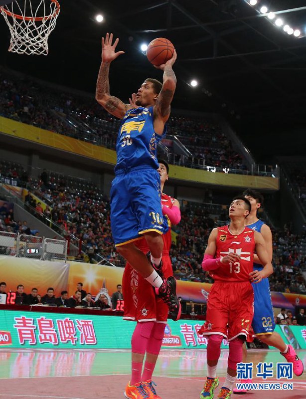 1月18日,南方队球员比斯利(上)在比赛中扣篮。