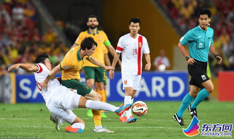 当地时间2015年1月22日,澳大利亚布里斯班,2015年亚洲杯1/4决赛,中国VS澳大利亚 蔡慧康铲球