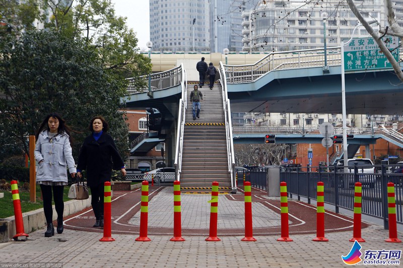 2015年2月24日,上海,近日,一条318米的健身步道亮相位于延安中路和瑞金一路交界处,给这块绿地带来了新活力,为附近的社区居民创造跑步锻炼的条件。
