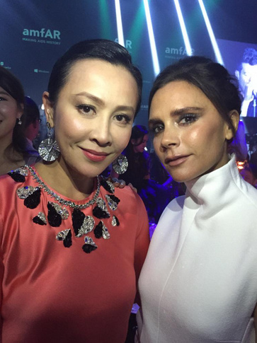 贝嫂参加时尚晚宴,与刘嘉玲合影。