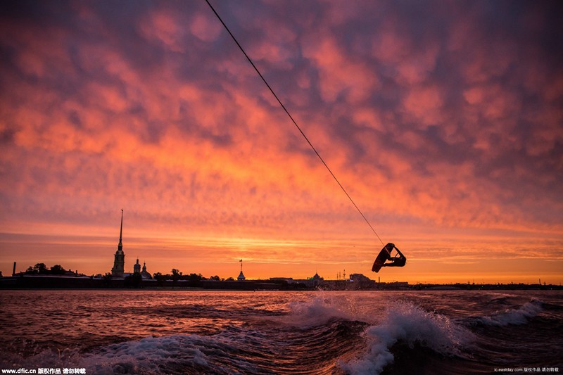 俄罗斯著名极限冲浪运动员现身圣彼得堡 大展冲浪技巧令人惊叹