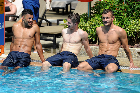 张伯伦、威尔希尔、钱伯斯泳池边畅聊。