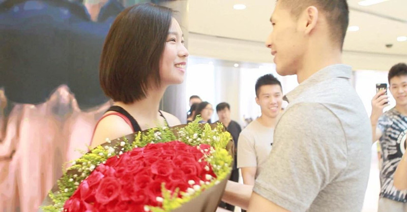 体操奥运冠军包商场大屏幕求婚 与女友热情拥吻