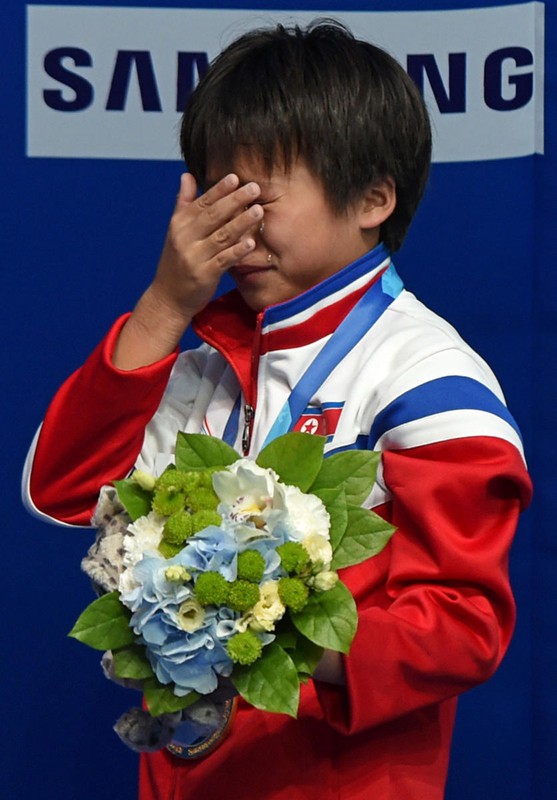 郑大世式痛哭 朝鲜选手夺跳水金牌后泪流满面