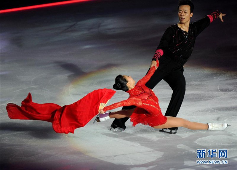 2010年9月4日,中国选手申雪、赵宏博在首都体育馆举办冰上婚典,并邀请中外文体明星为观众奉献上一场赏心悦目、浪漫唯美的视听盛宴。申雪/赵宏博是2010年温哥华冬奥会花样滑冰双人滑金牌得主,此前他们还夺得了三届世界锦标赛冠军。这对冰上情侣于2007年登记结婚,但是一直没有举行婚礼。图为申雪/赵宏博在婚礼上表演双人滑。
