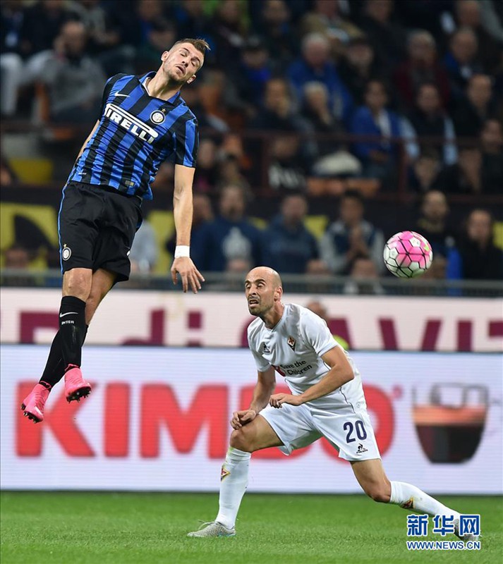 9月27日,国际米兰队球员桑顿(左)和佛罗伦萨队球员博尔哈·巴雷罗在比赛中拼抢。