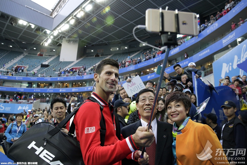 2015年10月8日,北京,2015中国网球公开赛,德约科维奇玩自拍。