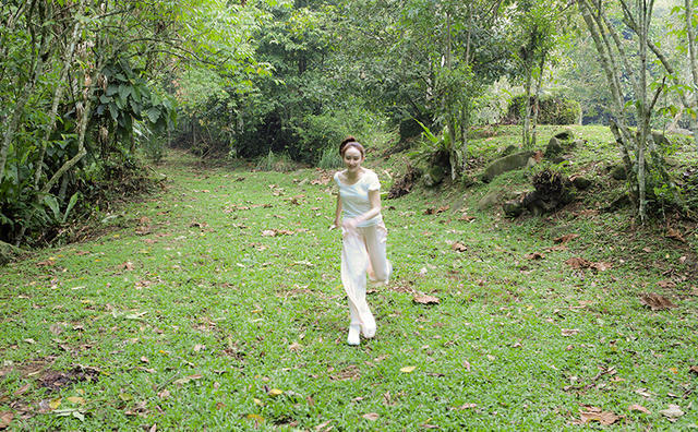 阔太胡静林间优雅做瑜伽,网友大赞仙气足。