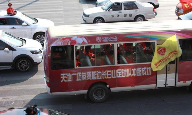 全城狂欢 延边冲超游行球迷车队庞大战旗飘扬