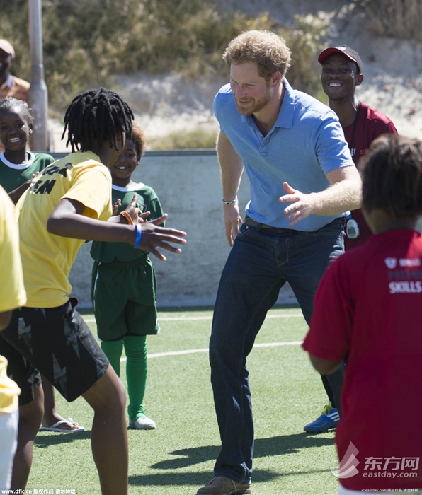 地时间2015年11月30日,南非开普敦,哈里王子访问南非,参观足球希望中心小秀球技。