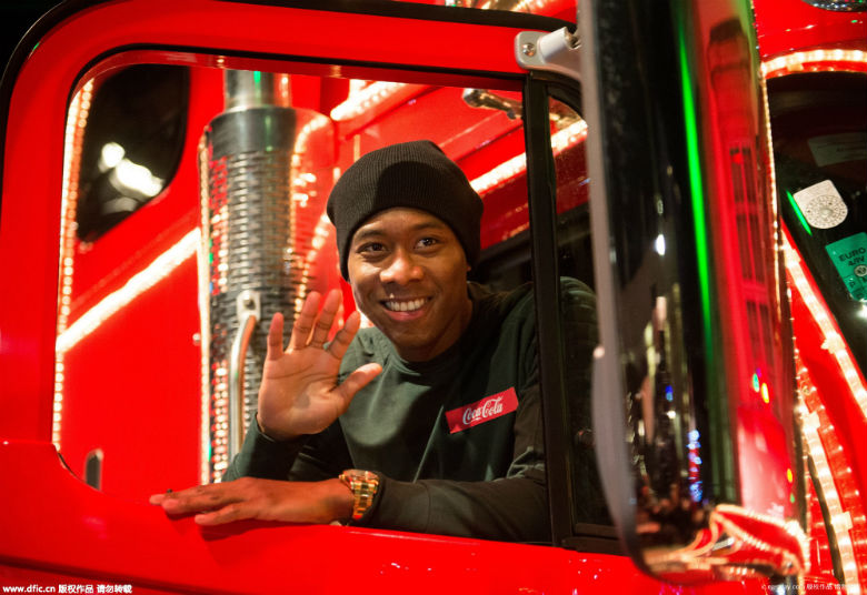 当地时间2015年12月22日,奥地利维也纳,阿拉巴再夺奥地利足球先生,高举奖杯与圣诞老人狂欢。