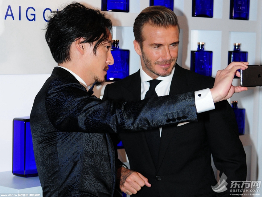 2016年01月14日,贝克汉姆在上海出席活动和男星张震玩自拍,莫文蔚长裙美艳镜。