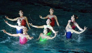 朝鲜美女上演水上芭蕾 纪念金正日诞辰日