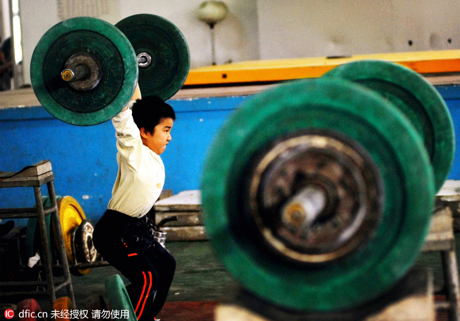 快,更高,更强”的“精髓不是为了获胜而是使人类变得更勇敢、更健壮、更谨慎和更落落大方。”图为2007年1月19日,厦门体校的训练基地内,一名举重小队员正在进行器械训练。